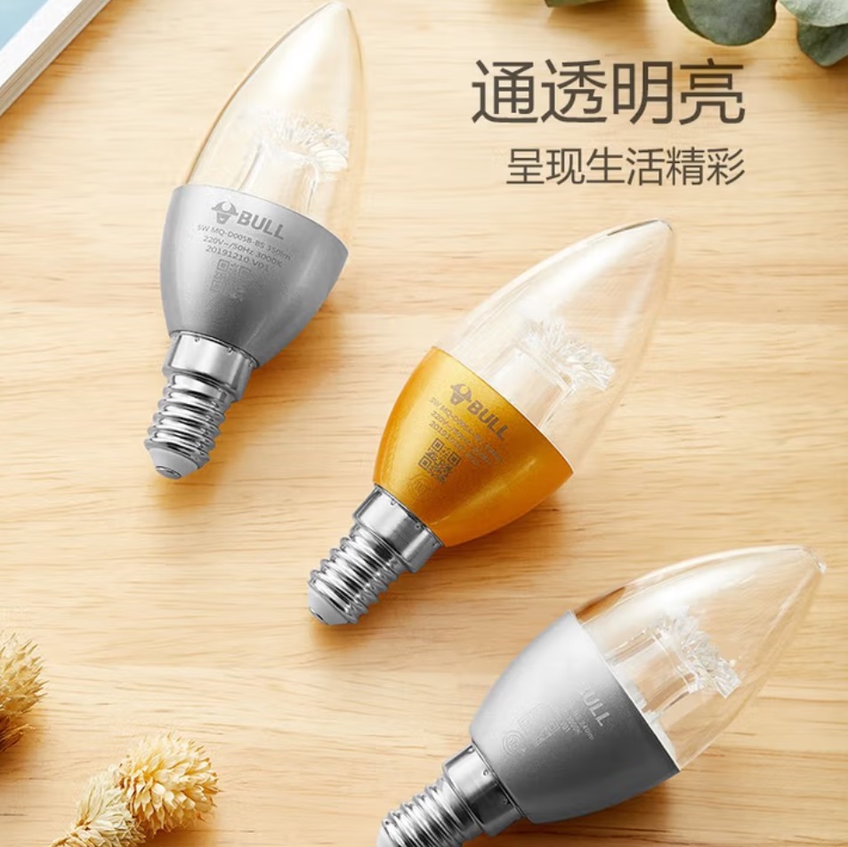 • 商品名称:公牛 5W-E14 银色蜡烛灯 暖黄光