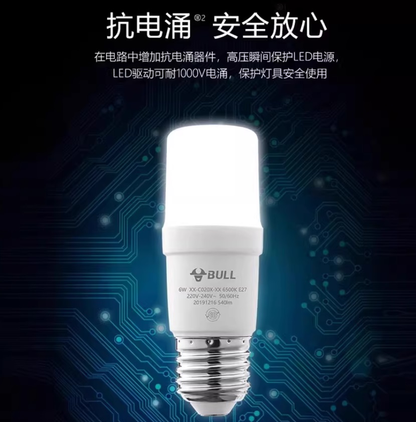 办公生活 日常照明 公牛 6W-E27 直筒灯 正白光...