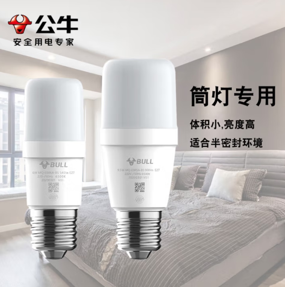 办公生活 日常照明 公牛 9.5W-E27 直筒灯 正白光...