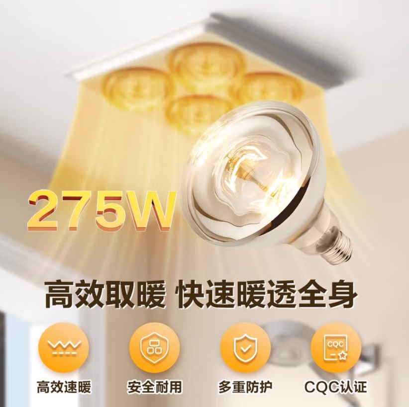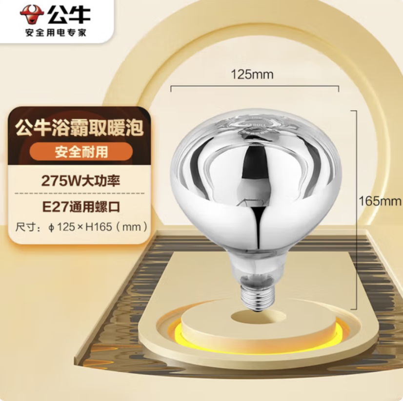 • 商品名称:公牛 H165 短脚浴霸灯 275W