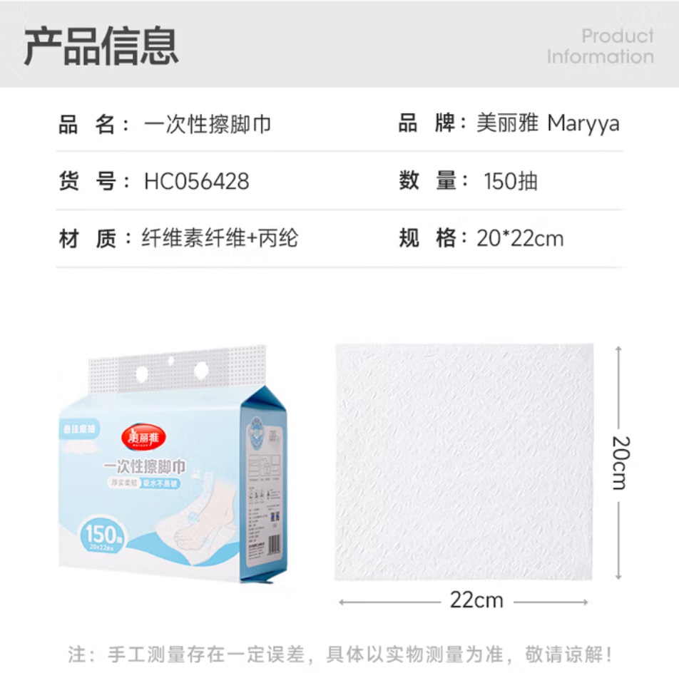 • 商品名称:美丽雅HC056428一次性擦脚巾 抽取式 150抽