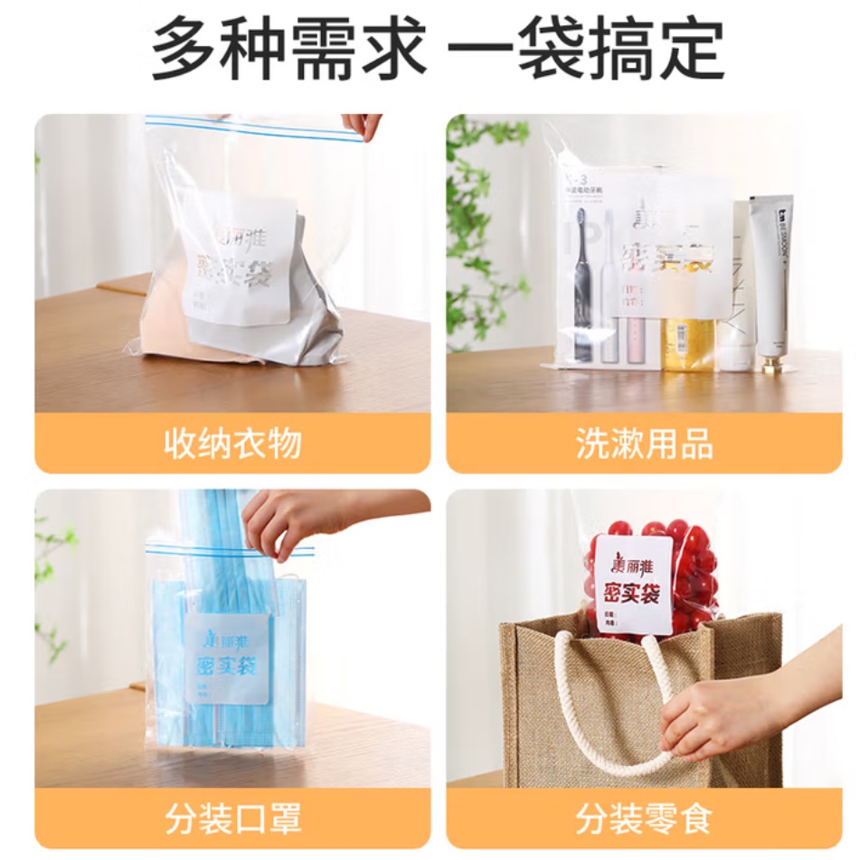 • 商品名称:美丽雅 HC053519 中号 食品级密封袋 17.8cm×20.3cm 25只装