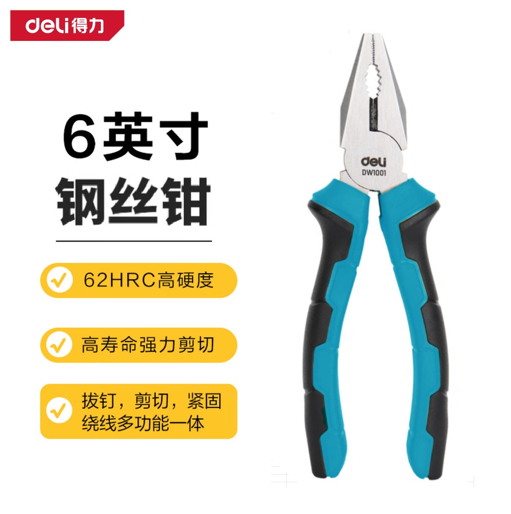 办公生活 日常照明 得力DW1000 胶柄 6英寸 钒钢钢丝钳 工业级 老虎钳...