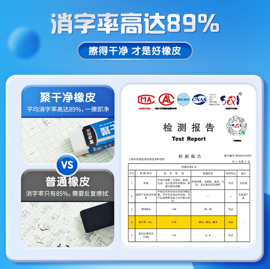 日常文具 修正用品 晨光 AXP963HM 聚干净 无邻苯 橡皮 大号 单个装...