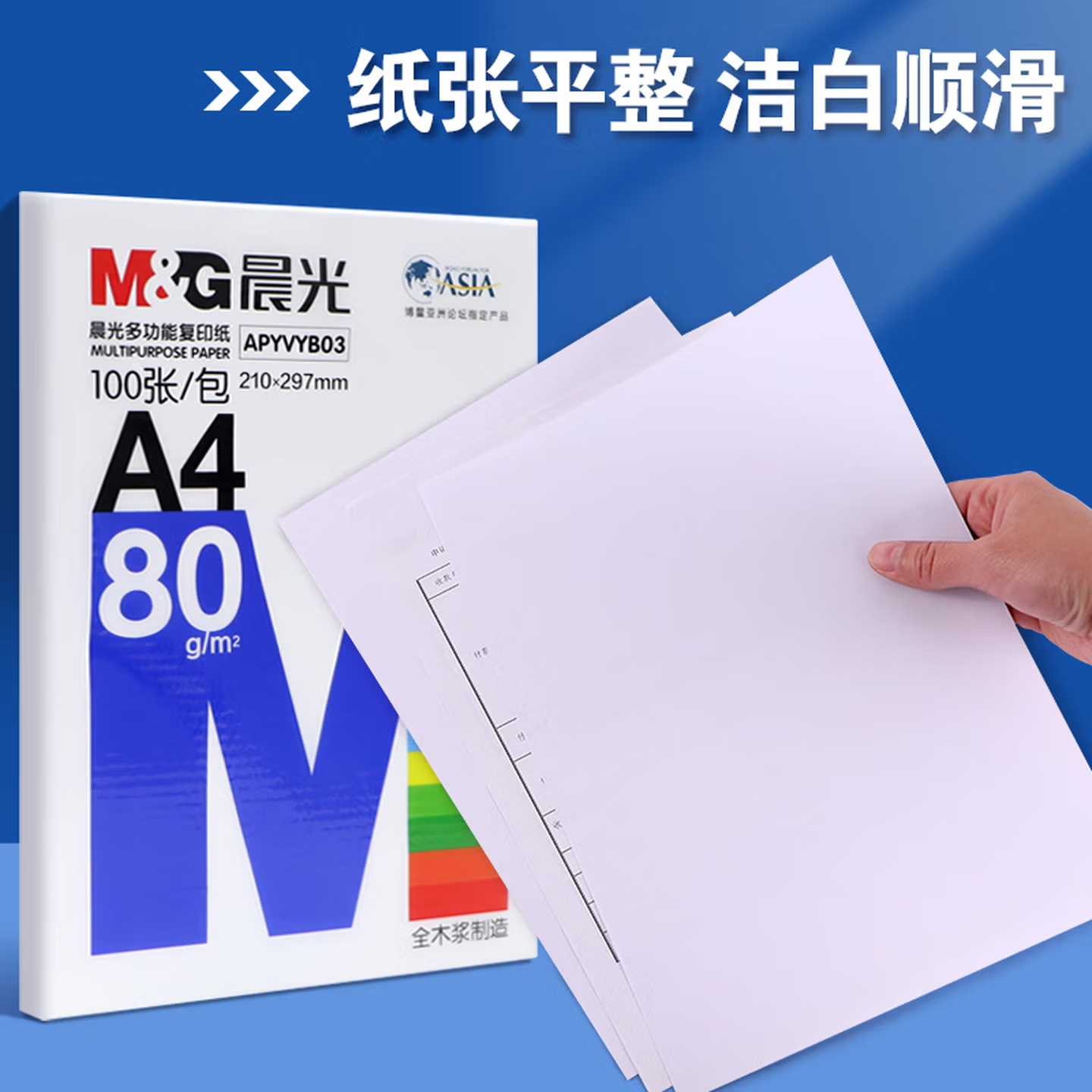办公用纸 复印纸 晨光 A4 全木桨复印纸80g 100张×1包 单张尺寸 210mm×297mm...