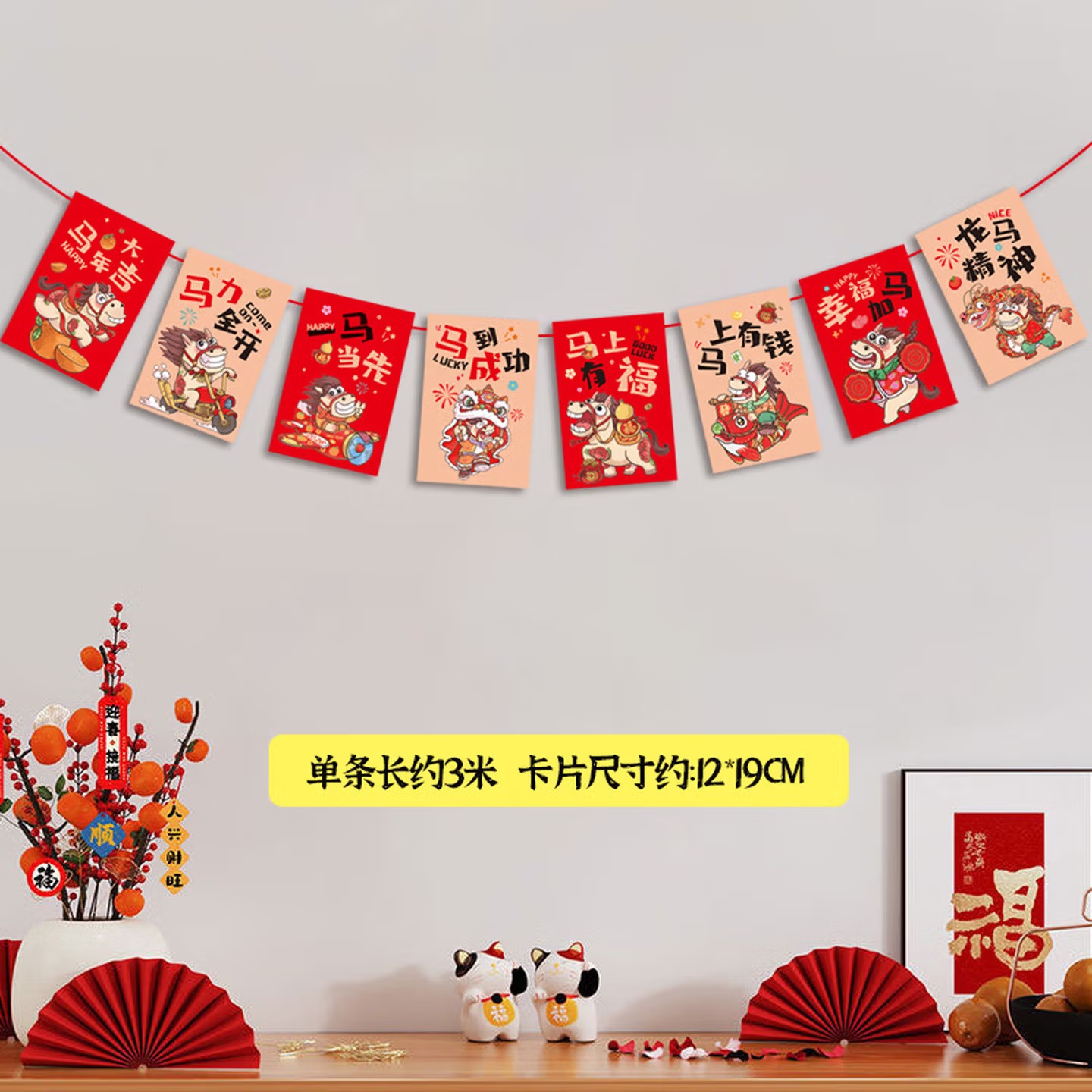 曦米HY64新年装饰氛围布置节庆拉旗 马到成功 单条装 3米