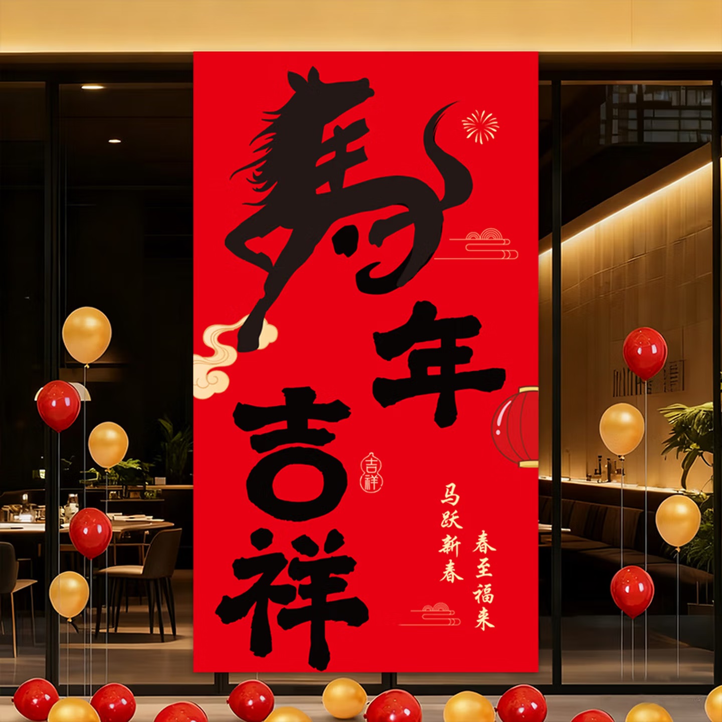 泓喆 W10 马年大吉 元旦新年装饰挂布 年会场景道具 100cm×150cm