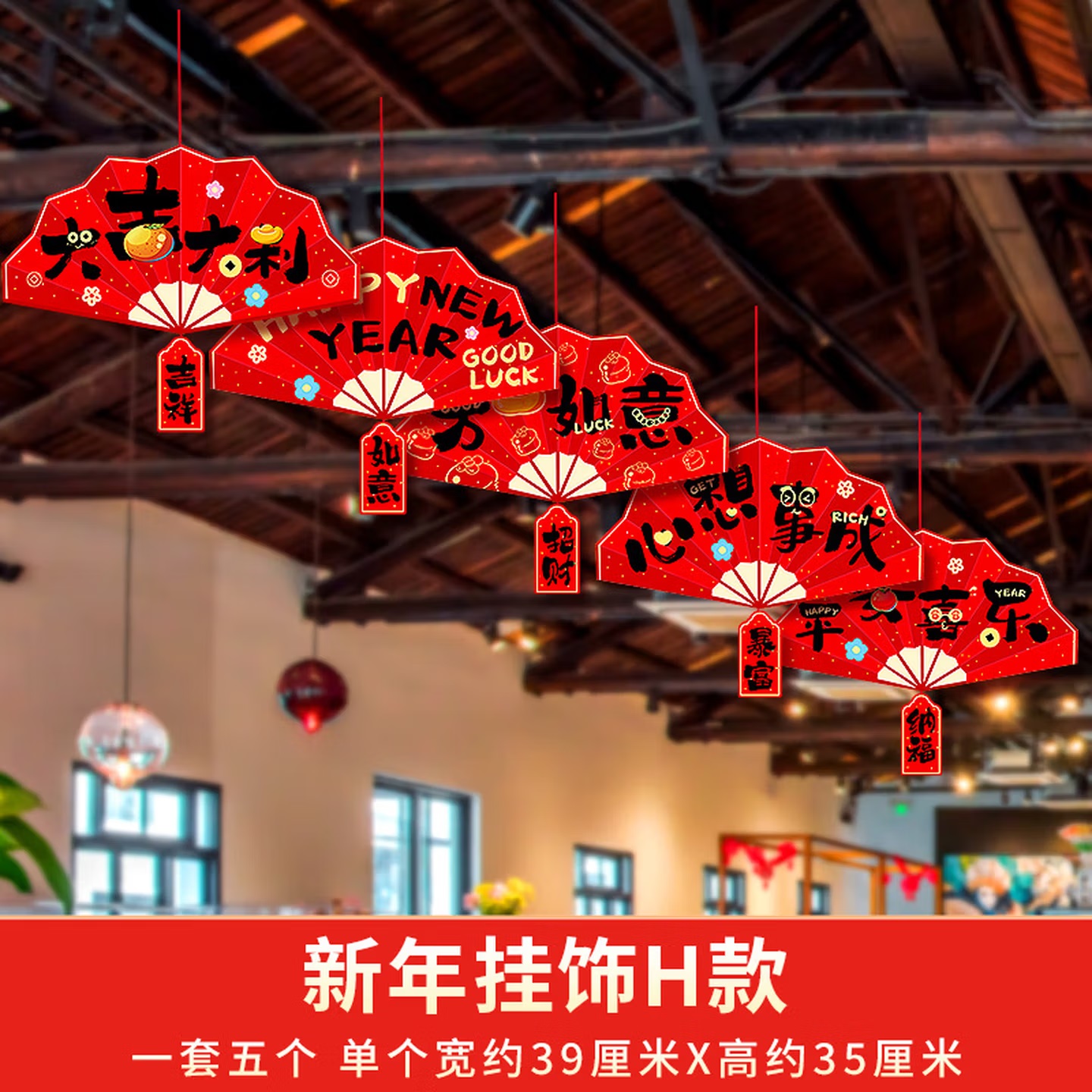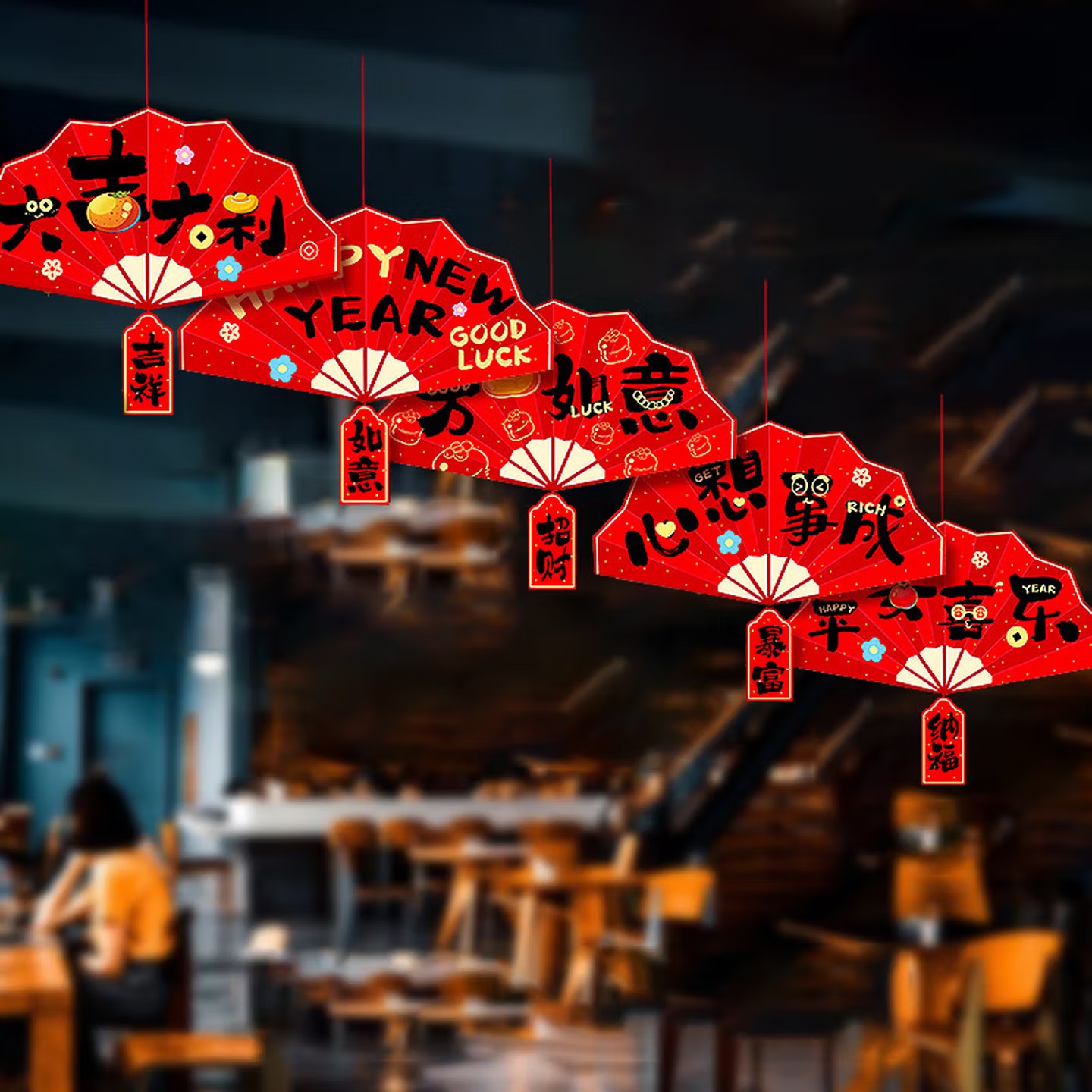 • 商品名称:曦米HL30新年装饰氛围布置吊旗挂件 中式折扇 5个套装