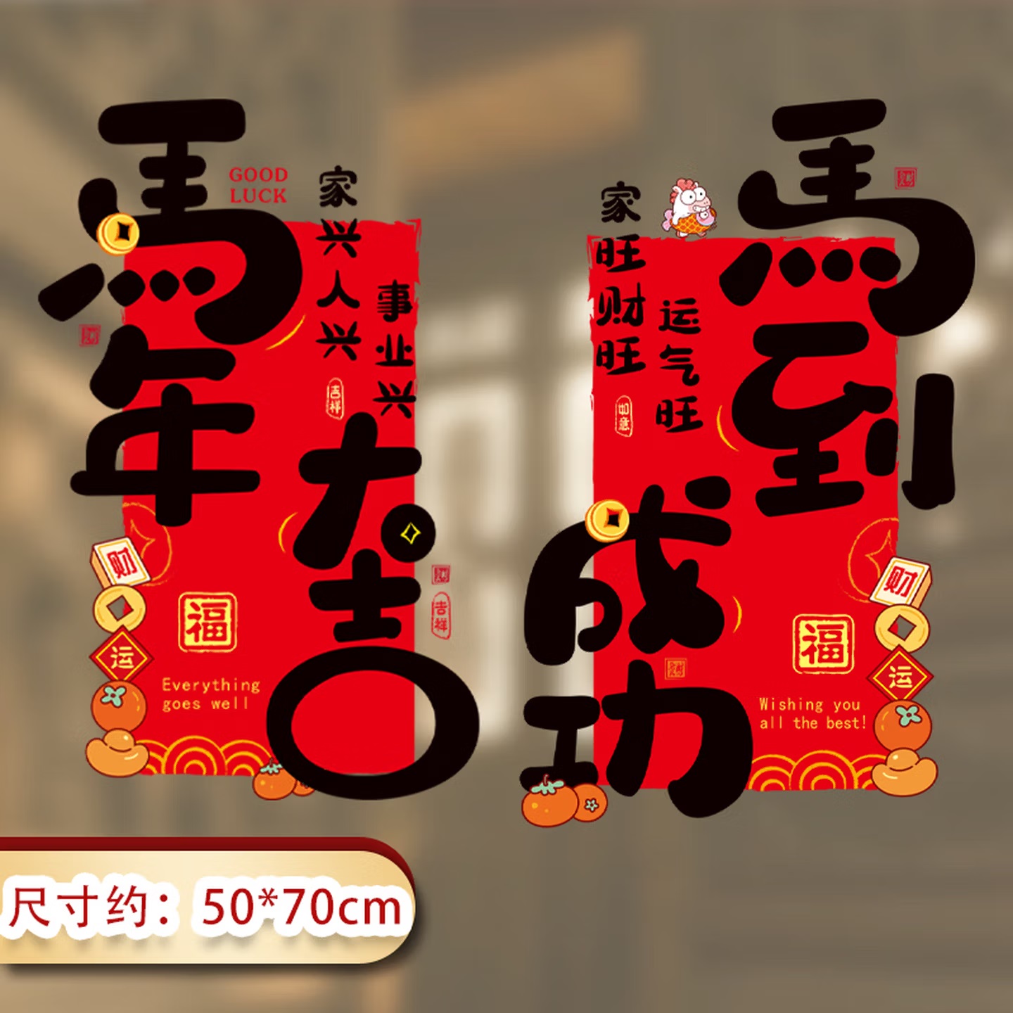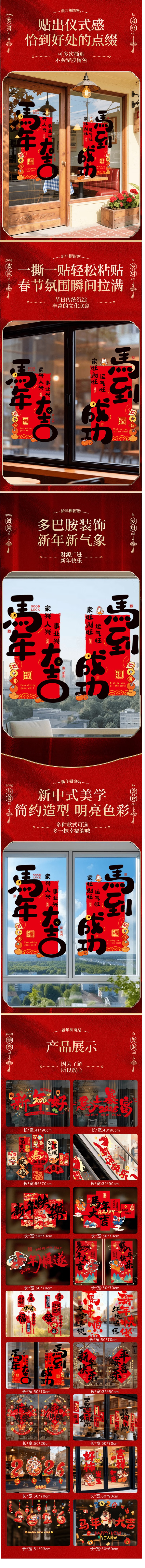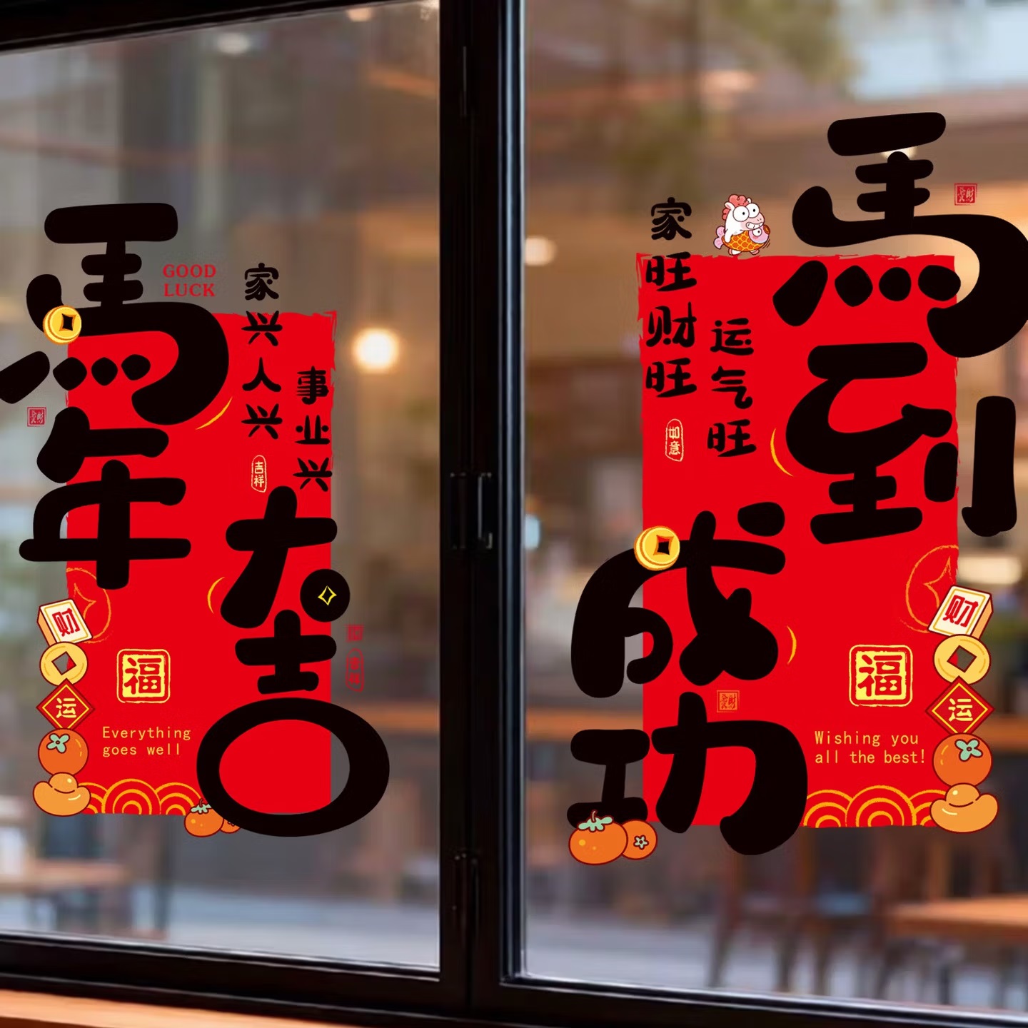 会议展示 年会庆典 曦米 HY200 新年装饰窗花橱窗布置贴 静电窗贴 马到成功...