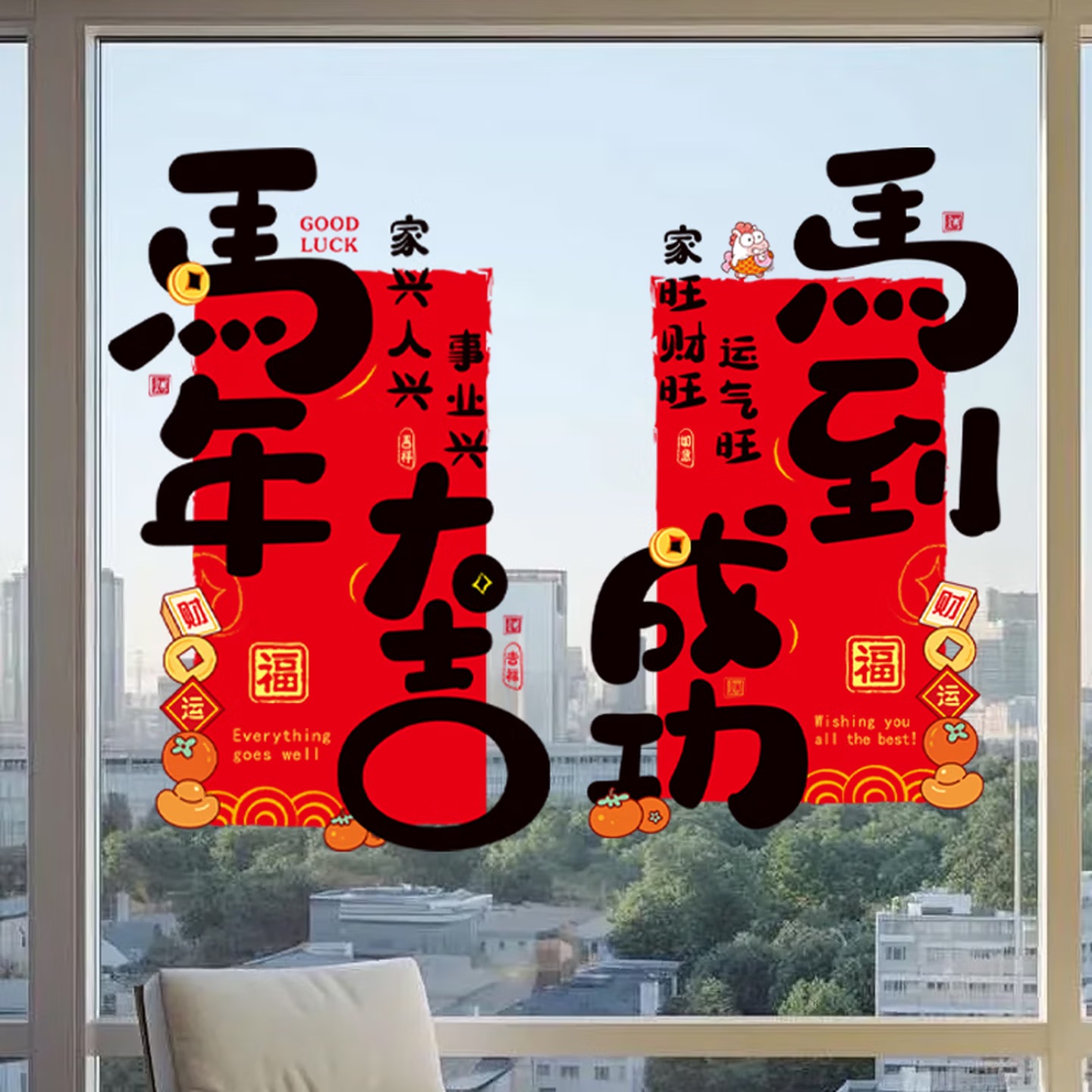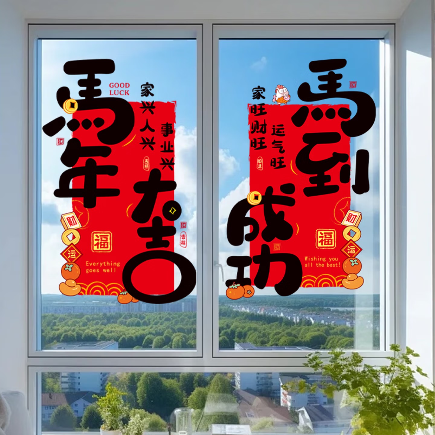 曦米 HY200 新年装饰窗花橱窗布置贴 静电窗贴 马到成功