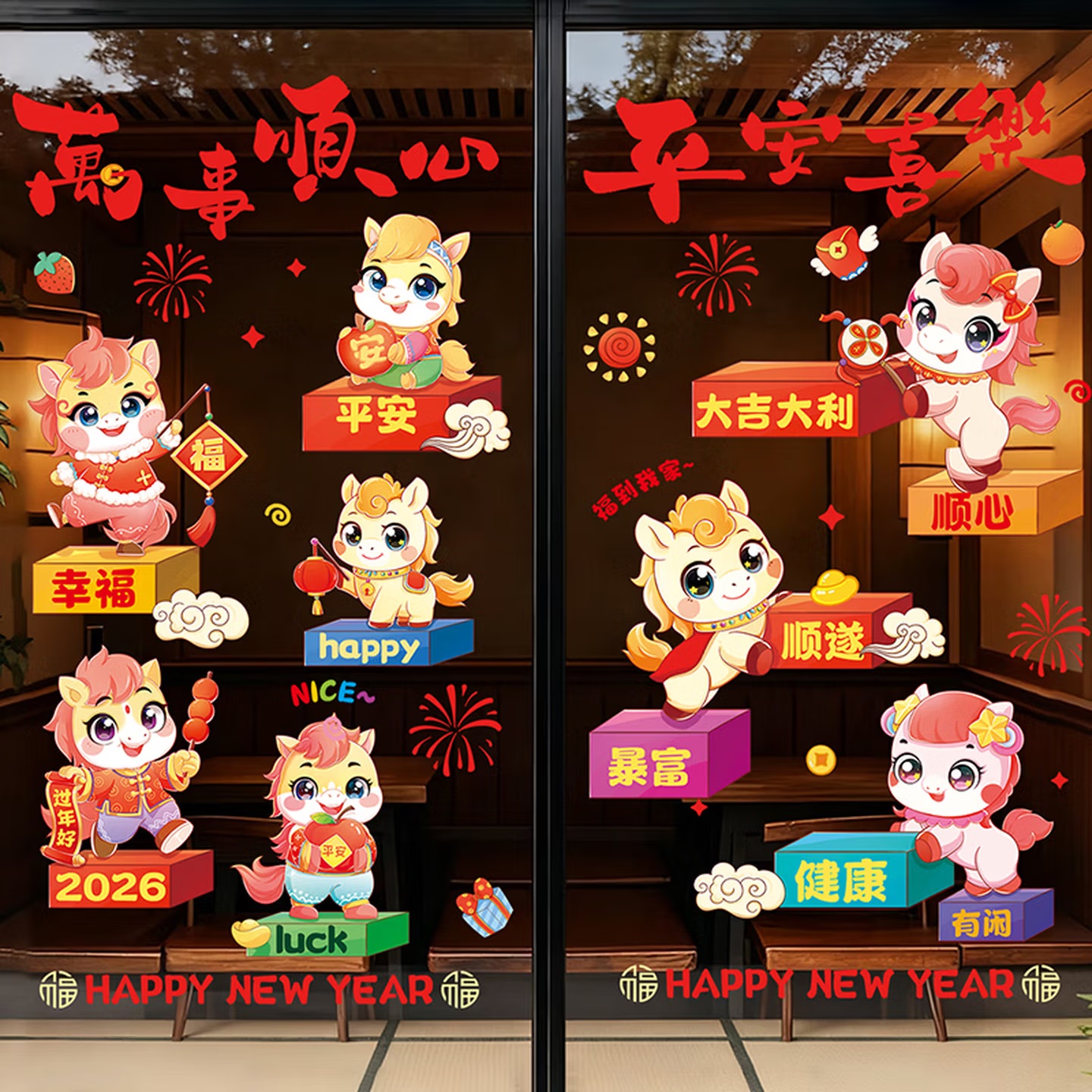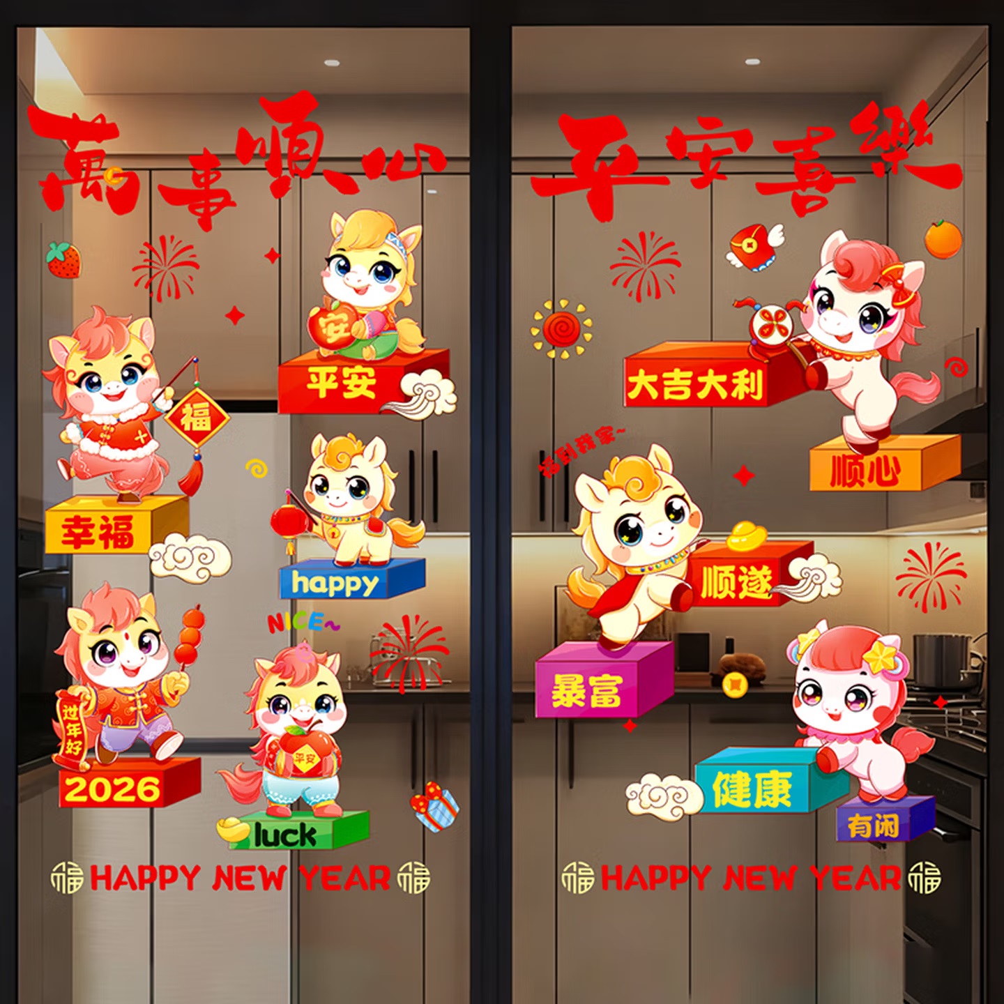 曦米 SM217 新年装饰窗花橱窗布置贴 静电窗贴 马年快乐