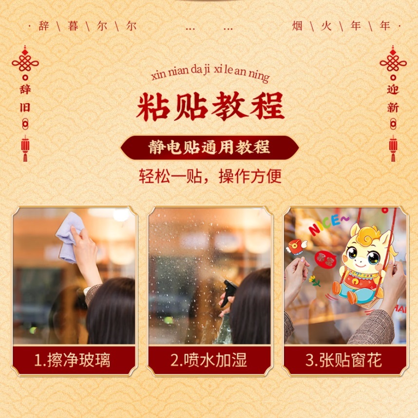 • 商品名称:曦米 SM217 新年装饰窗花橱窗布置贴 静电窗贴 马年快乐