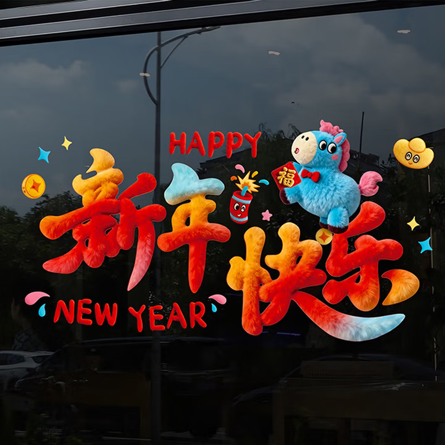 • 商品名称:曦米 HL02 新年装饰窗花橱窗布置贴 静电窗贴 马年新春