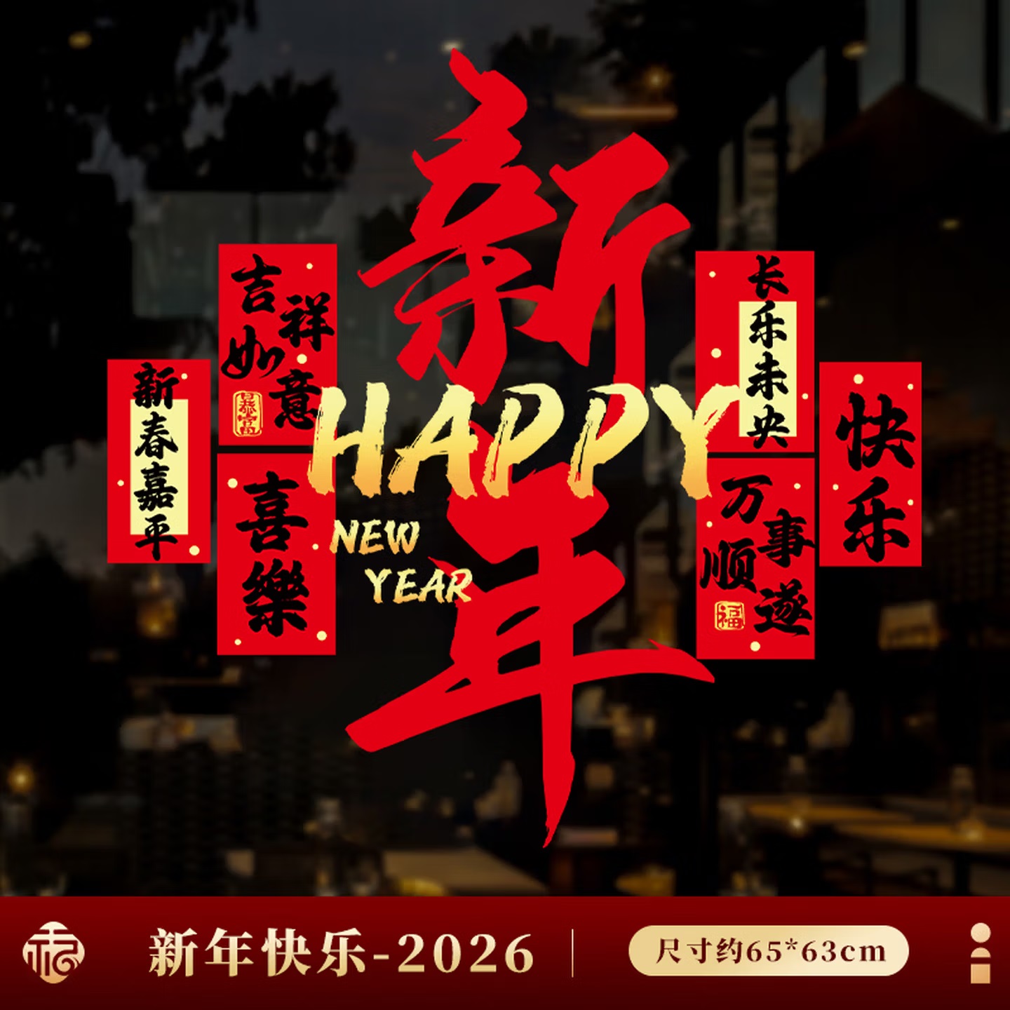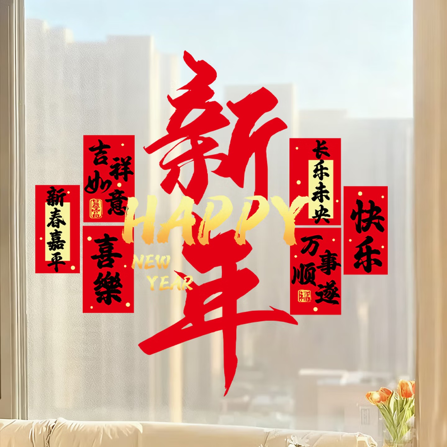 • 商品名称:曦米 HL132 新年装饰窗花橱窗布置贴 静电窗贴 新年