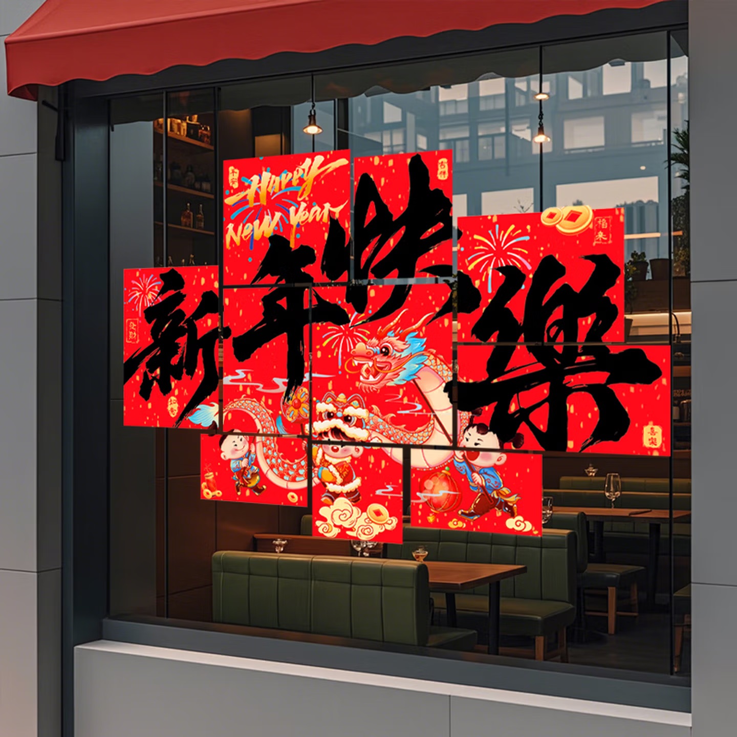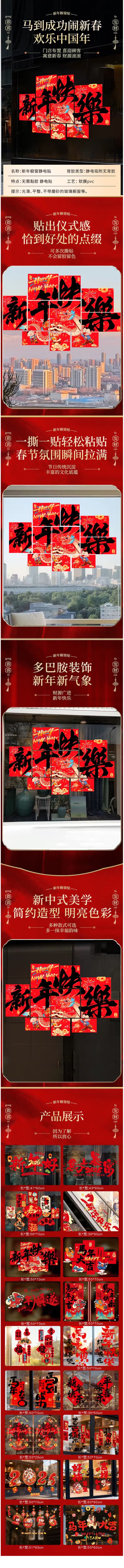 • 商品名称:曦米 HL128 新年装饰窗花橱窗布置贴 静电窗贴 新年快乐