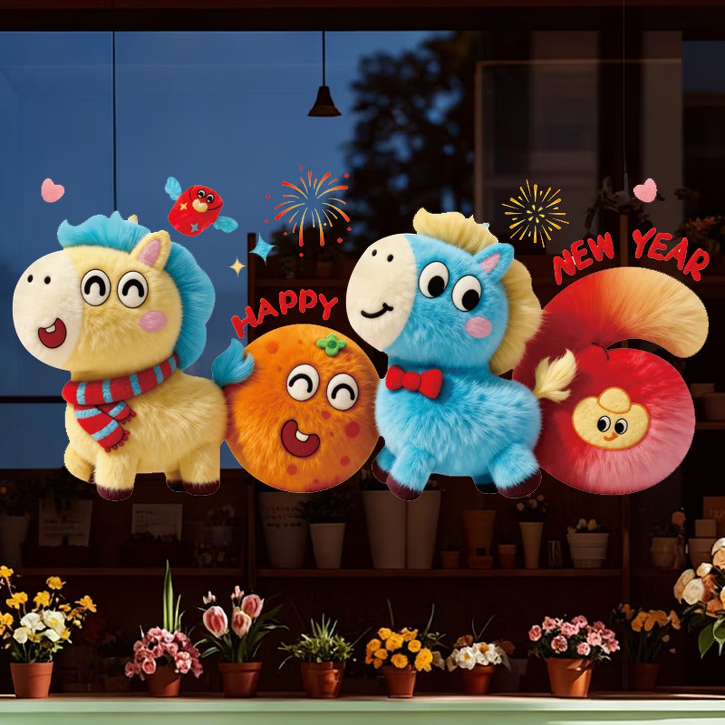 曦米 HL01 新年装饰窗花橱窗布置贴 静电窗贴 5D马年-D款