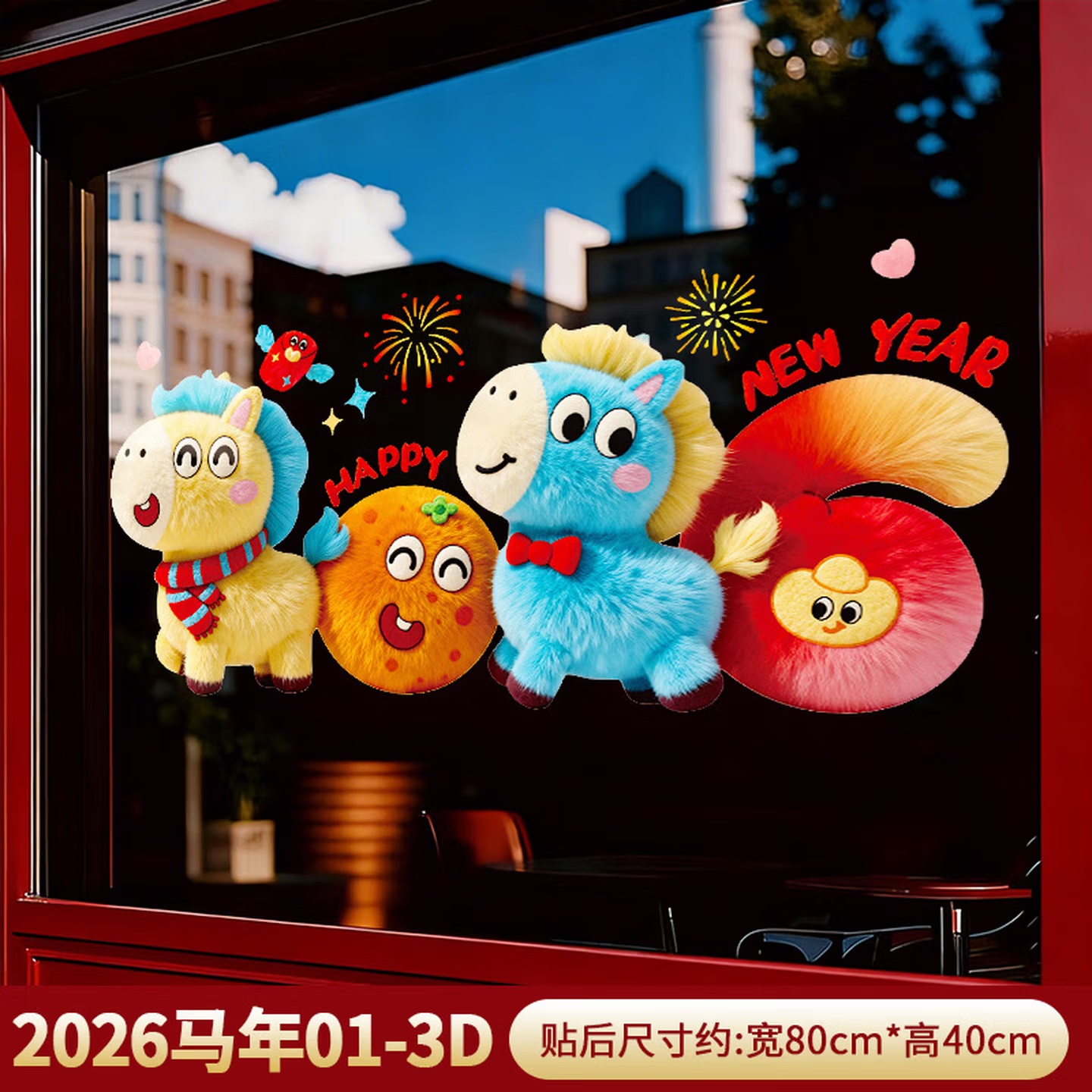 • 商品名称:曦米 HL01 新年装饰窗花橱窗布置贴 静电窗贴 5D马年-D款