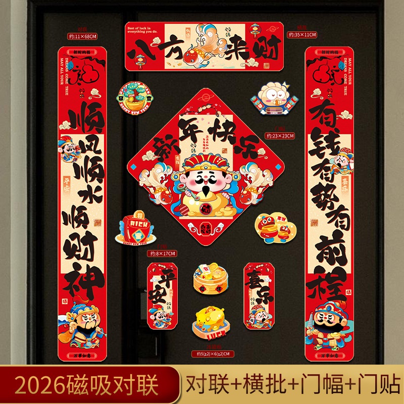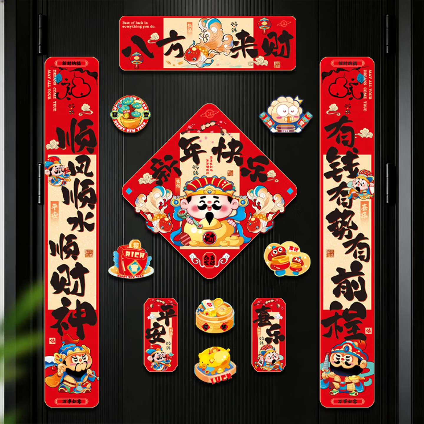 • 商品名称:曦米 HL15 全磁吸对联门联福字冰箱贴 八方来财-A款 12件套