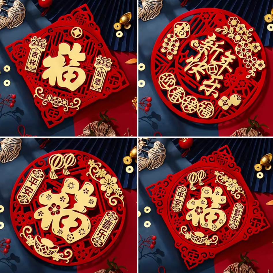 曦米 加厚型立体无纺布福字贴 带背胶 平安接财