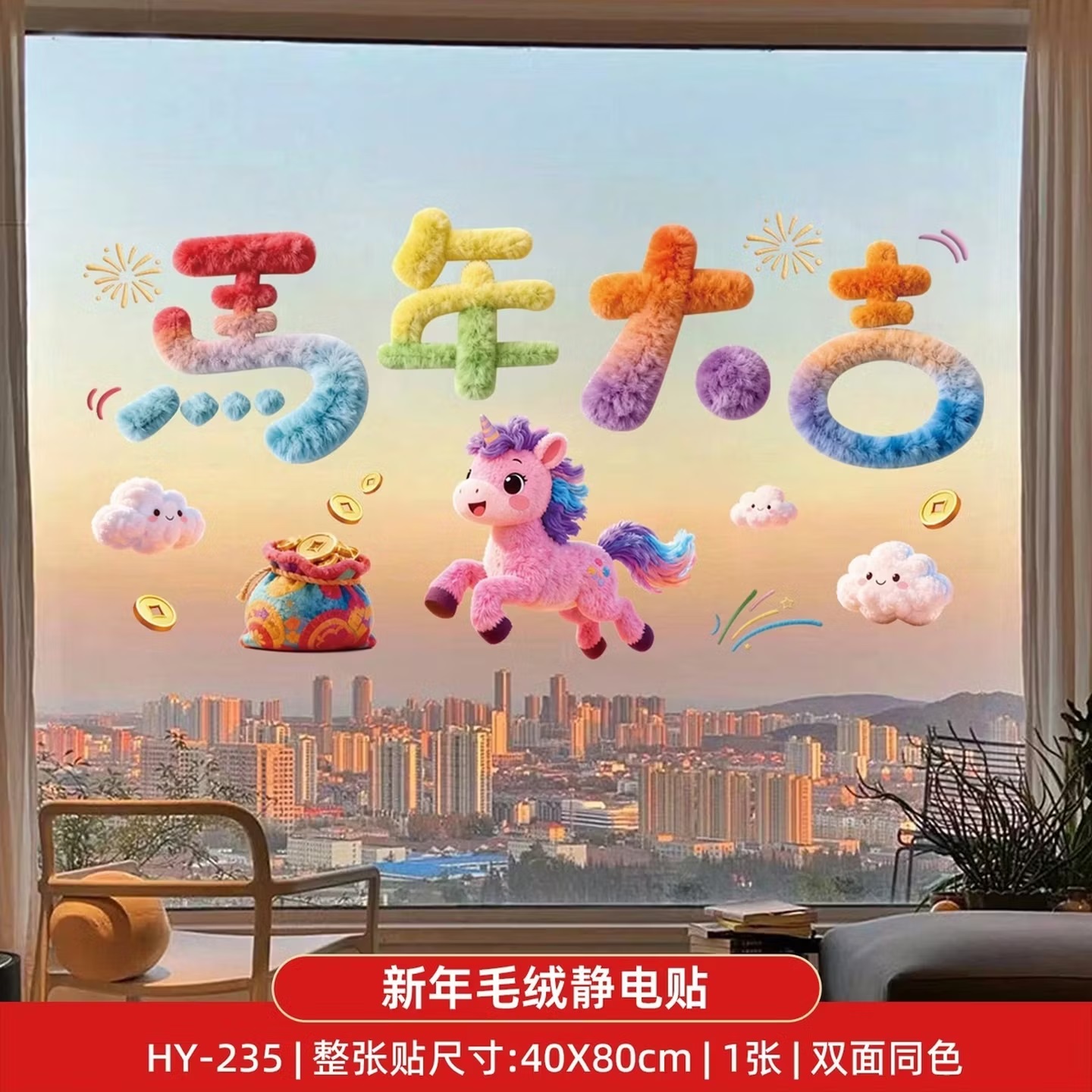 • 商品名称:曦米 HY235 新年装饰窗花橱窗布置贴 静电窗贴 5D马年-E款