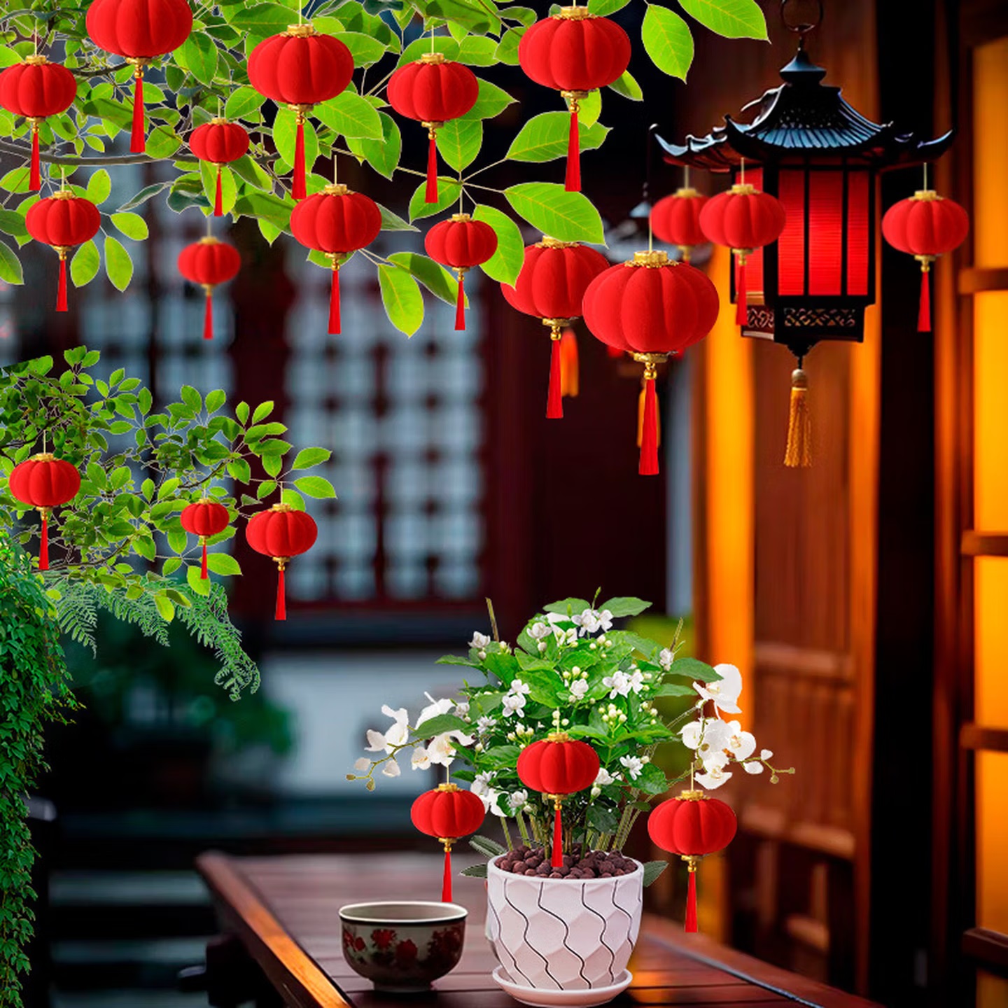 • 商品名称:曦米 #8 新年节庆装饰灯笼 植绒小灯笼 16个装