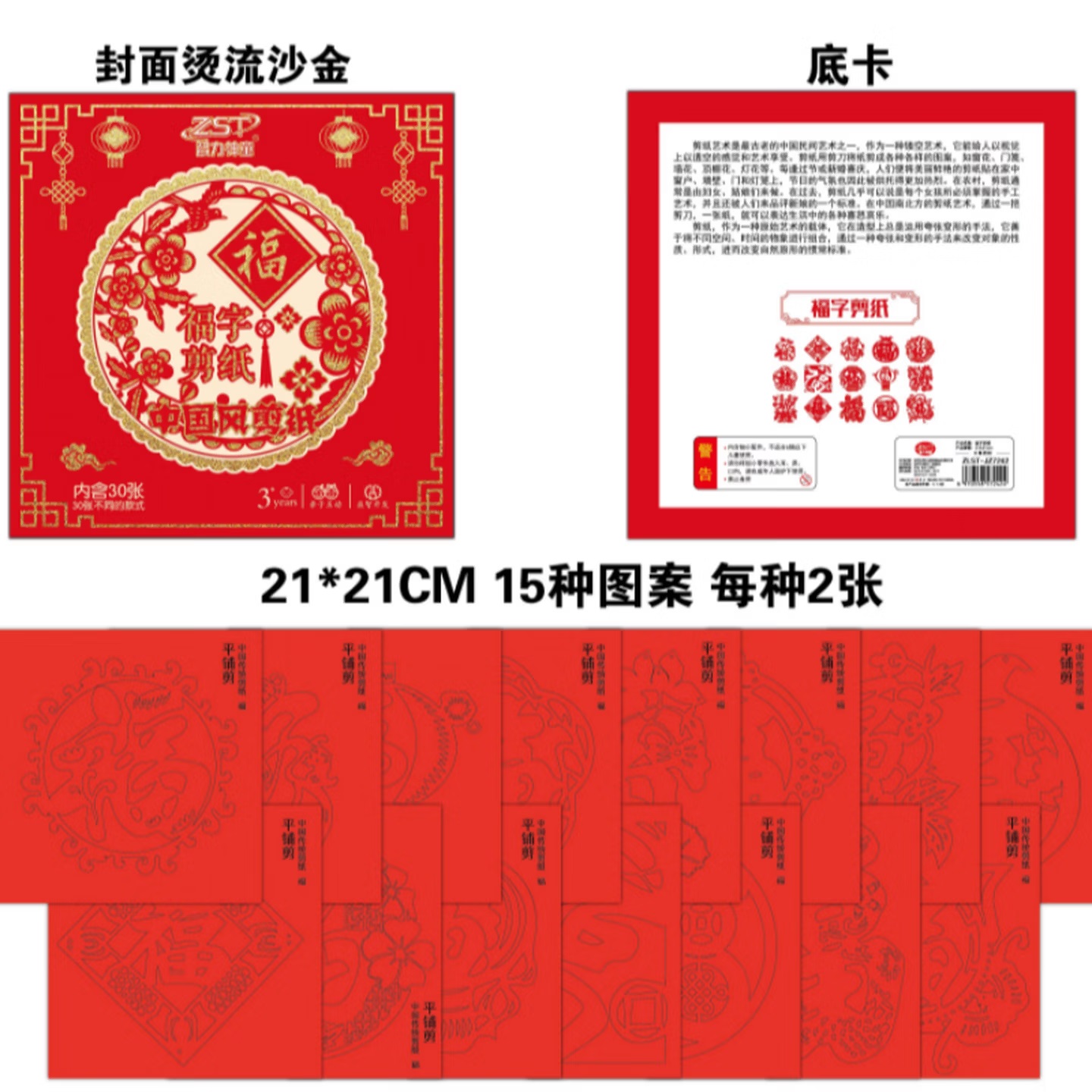 • 商品名称:神童 7242 新年福卡宣纸红纸手工纸 福字剪纸 30张装