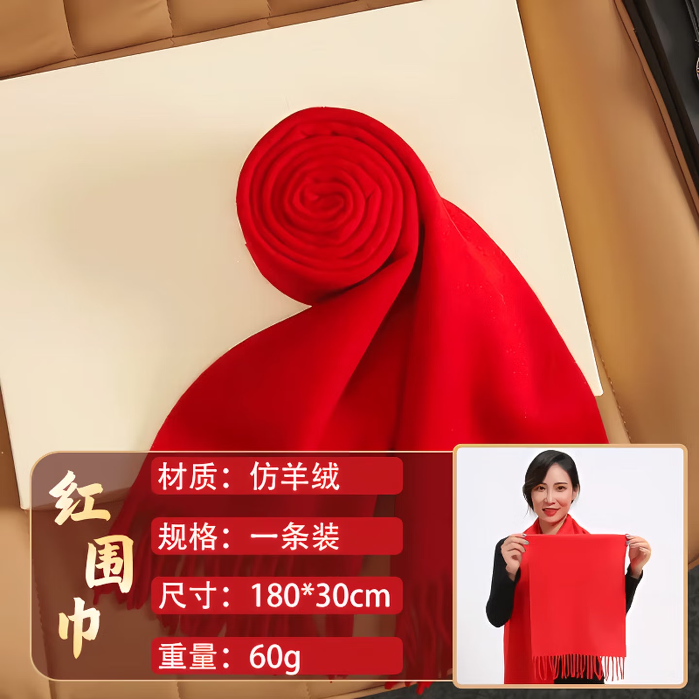 • 商品名称:美泽明HX63新年庆典年会流苏中国红 仿羊绒围巾 标宽 35cm×180cm