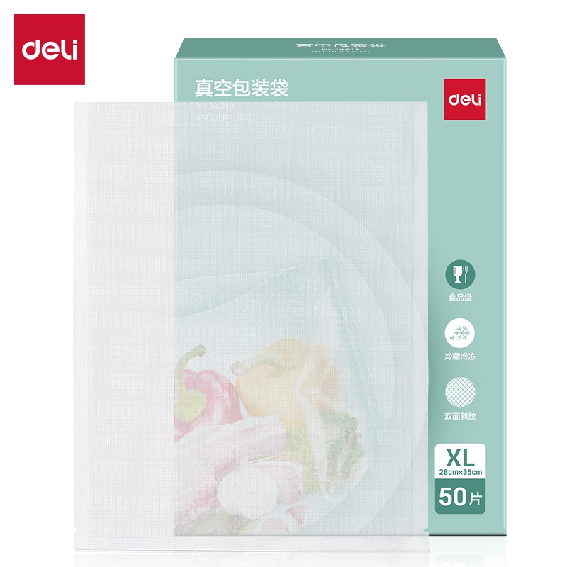 • 商品名称:得力14913食品级材质 双面压纹 透明真空包装袋 28mm×35mm×50片