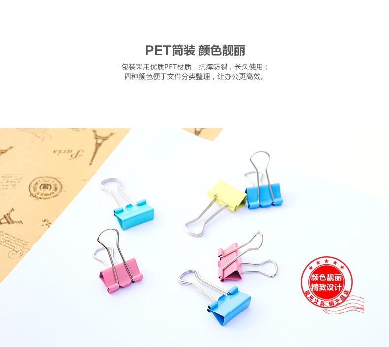 日常文具 票夹 晨光 ABS92742 彩色长尾夹 5# 19mm 40只装...