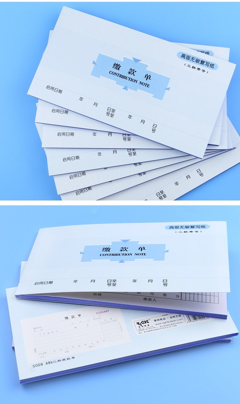 财会用品 单据 莱特 48K 三联无碳复写缴款单 5008 173mm×95mm 20组...