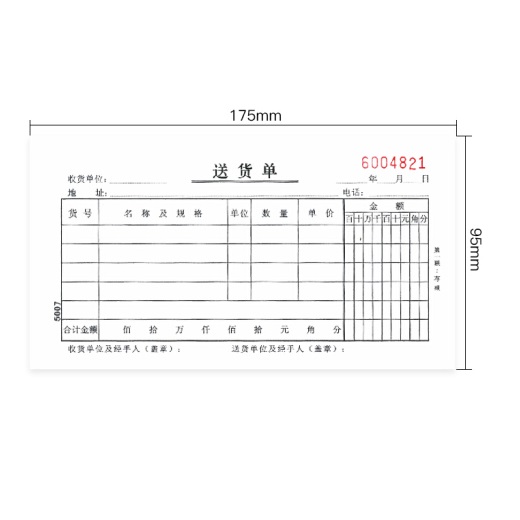 • 商品名称:莱特 48K 三联无碳复写送货单 5007 173mm×95mm 20组