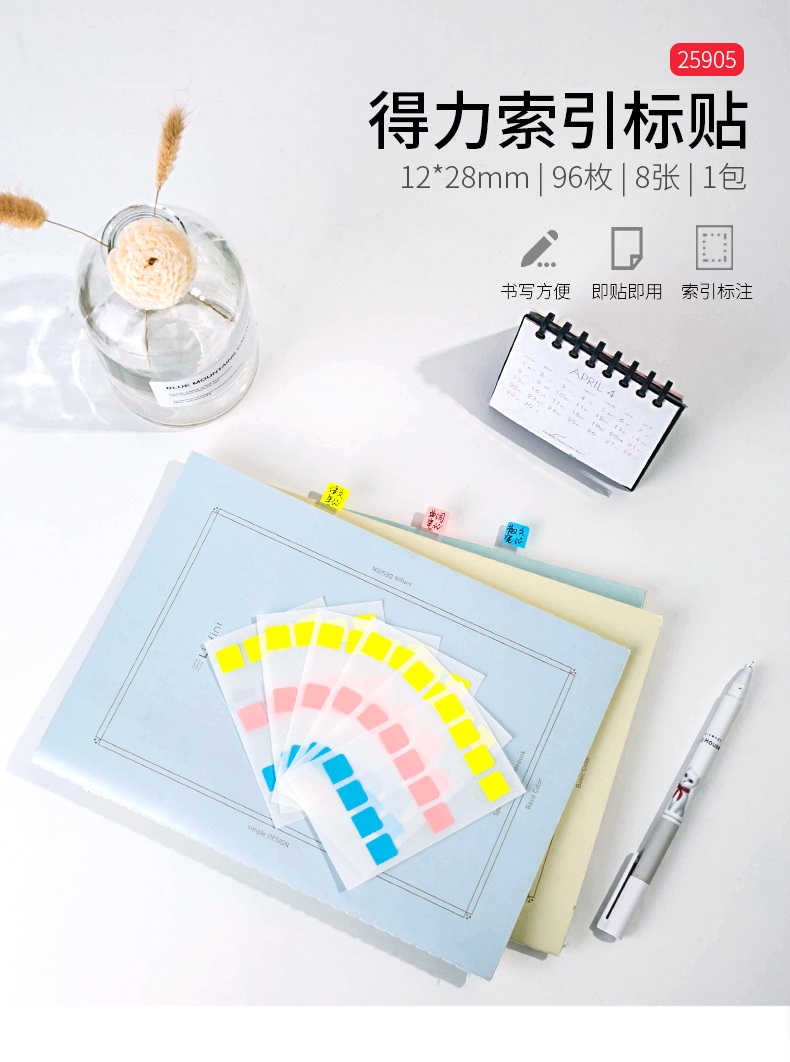 • 商品名称:得力 25905 三色指示标签 96枚 28mm×12mm 小号