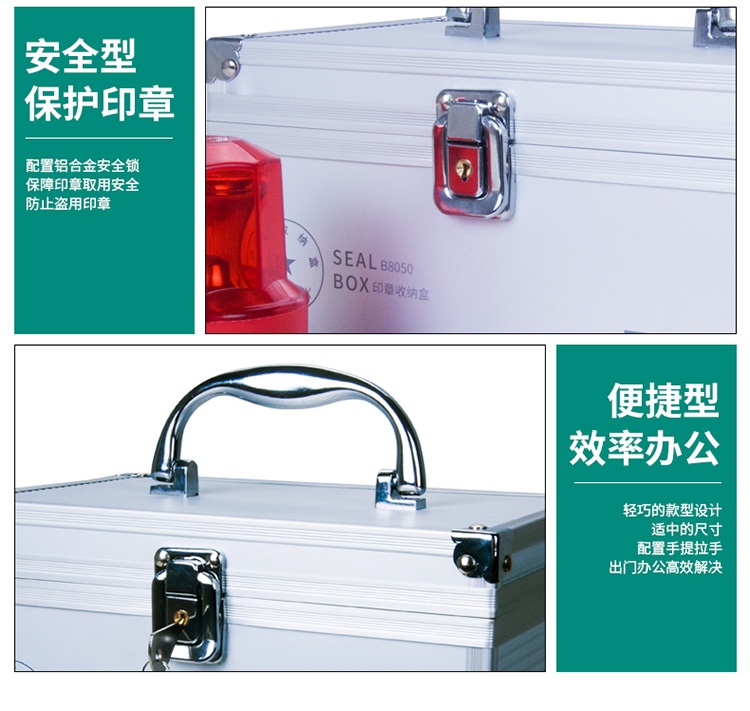 • 商品名称:金隆兴 B8050 带锁 铝合金 中号 印章箱 6格 长220mm×宽148mm×高110mm