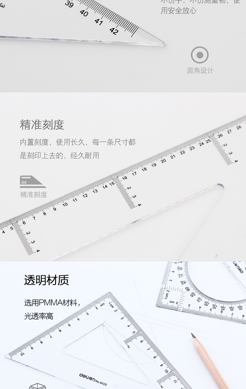 • 商品名称:得力6440塑料三角套直尺 40cm