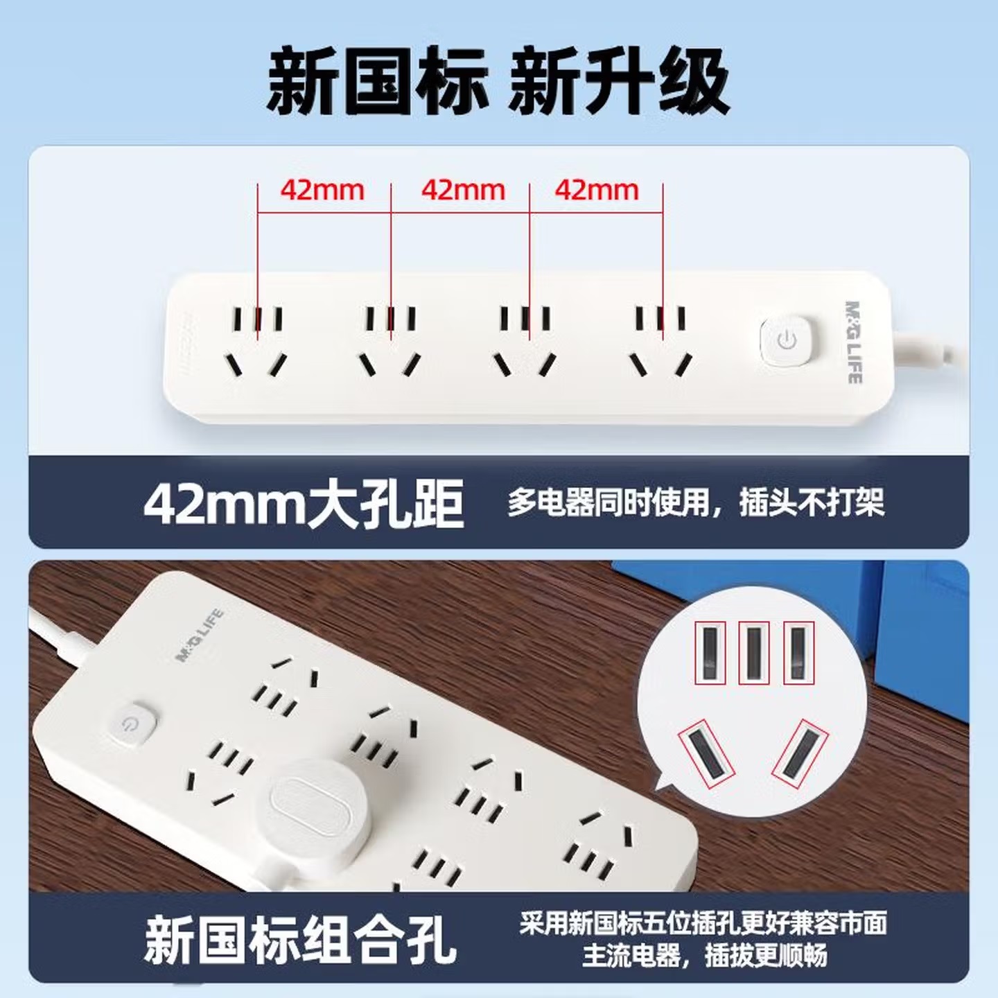 办公生活 插座 晨光AEA986D2新国标 三位插座 1.8米 2500W 10A...