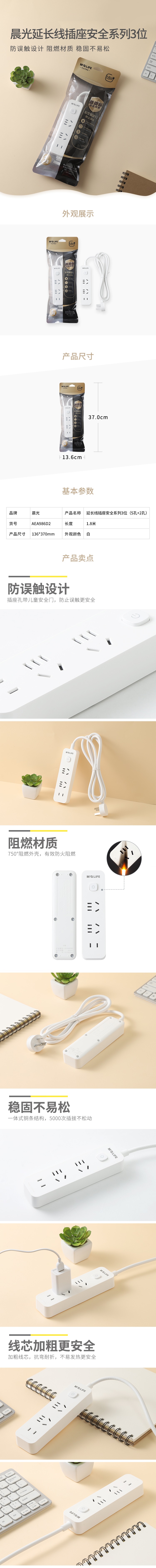• 商品名称:晨光AEA986D2新国标 三位插座 1.8米 2500W 10A
