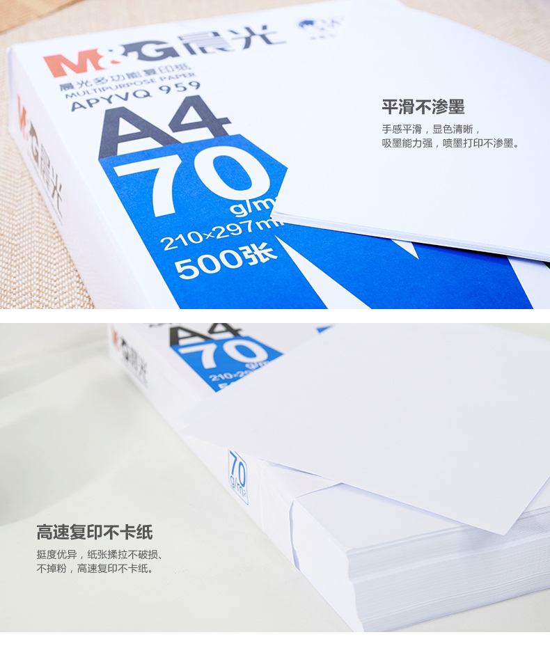 • 商品名称:晨光 A4 全木桨复印纸70g 500张×8包 单张尺寸 210mm×297mm